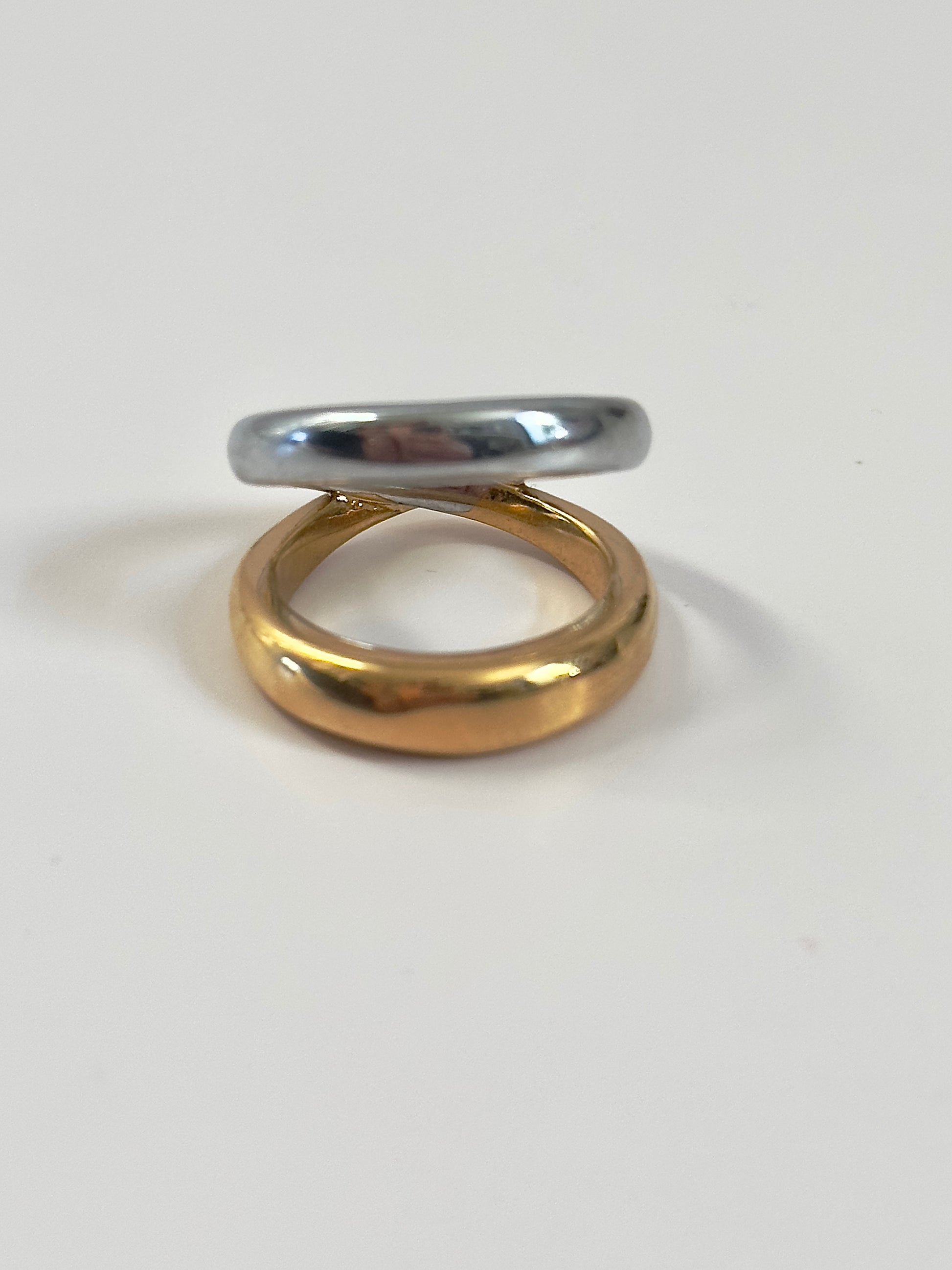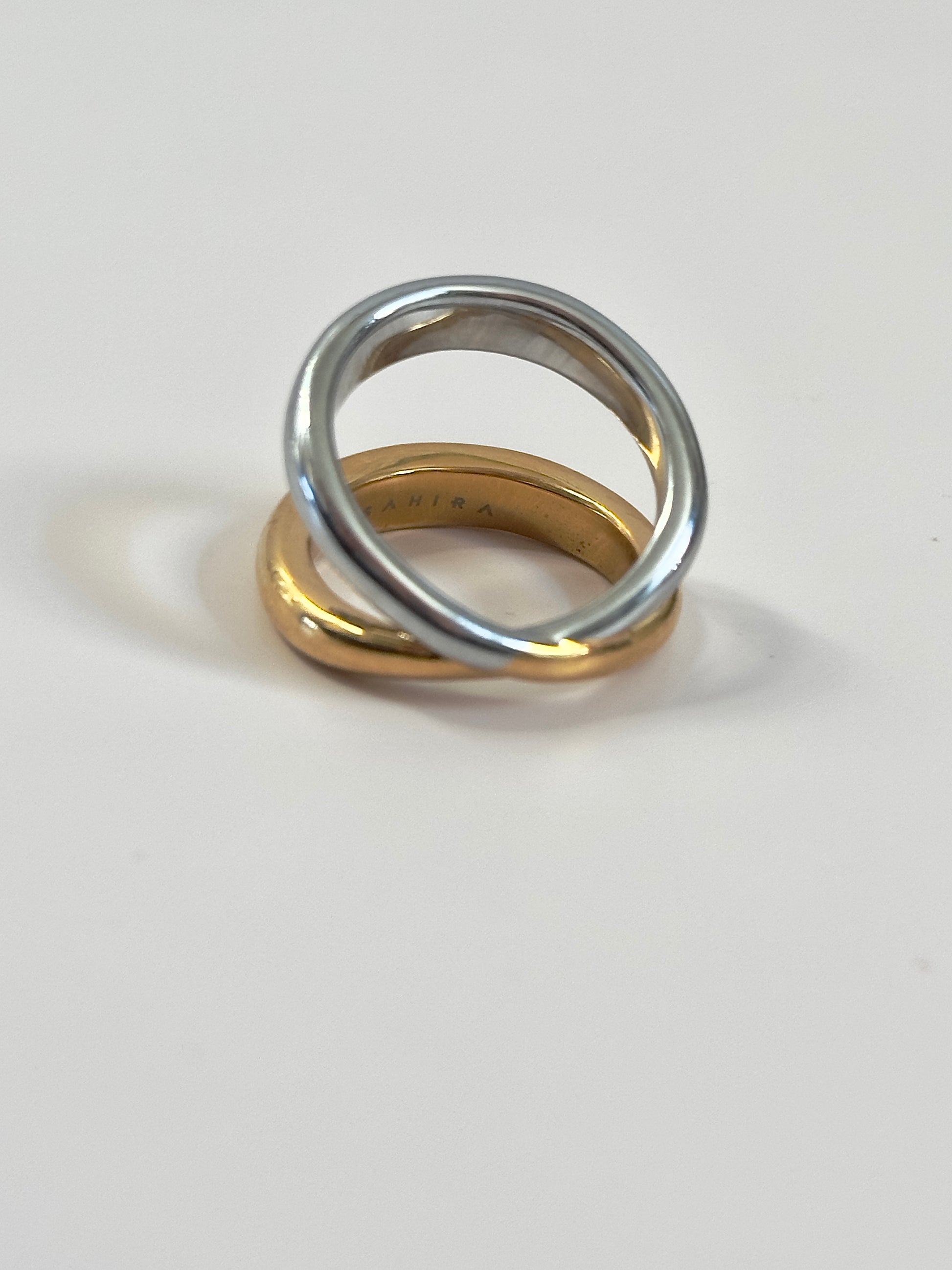 The2 Tone X Ring is a total essential! Thanks to its dual tones, it pairs flawlessly with both silver and gold, matching any outfit effortlessly. Whether for casual hangouts or special events, its double band design lets you flip it around and switch up your style anytime! * 18K Gold Plated Over Sterling Silver * Tarnish and Water Resistant * Hypoallergenic