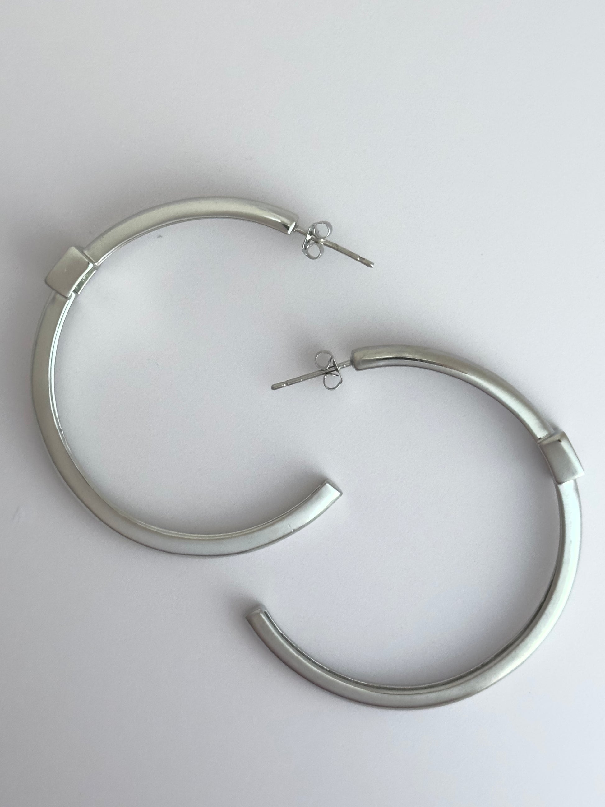 Indulge in the exclusive elegance of the super lightweight, 2" Be Fancy Silver Hoop, adorned with a stunning rectangle diamond accent. Dare to be different and elevate your style with this one-of-a-kind piece.