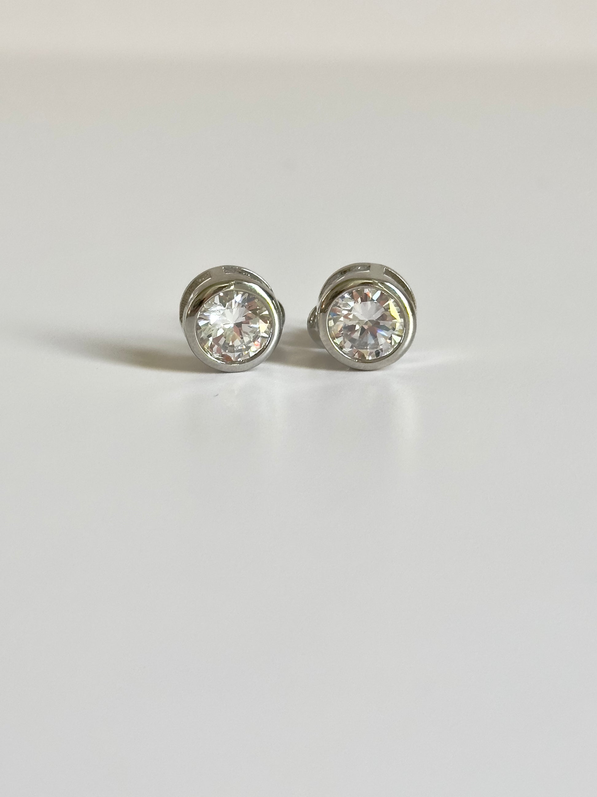 Enhance your look with the refined Bezel Silver Studs, distinguished by its elegant circle silhouette framed in radiant silver. Its minimalist design and high-gloss finish offer a graceful yet versatile accessory, ideal for adding a discreet touch of sophistication to any ensemble. Crafted from sterling silver, it is both water and tarnish resistant, and gently hypoallergenic.