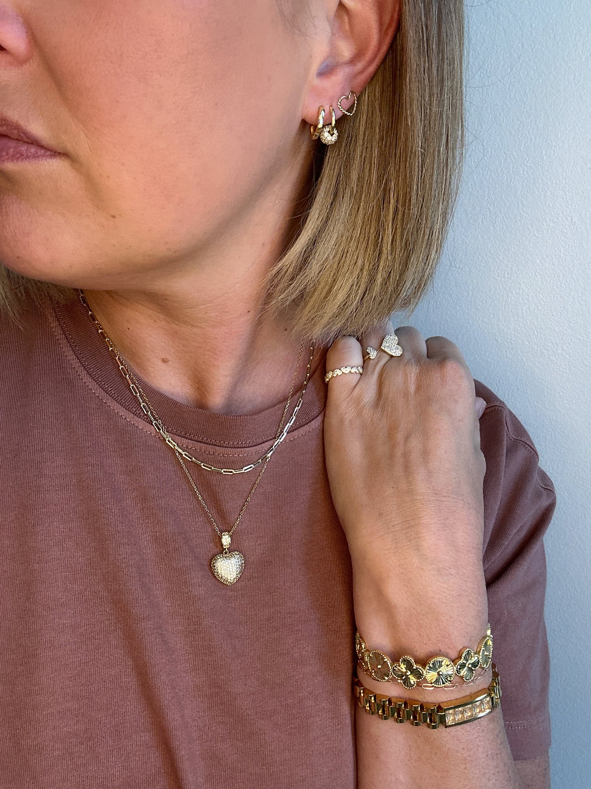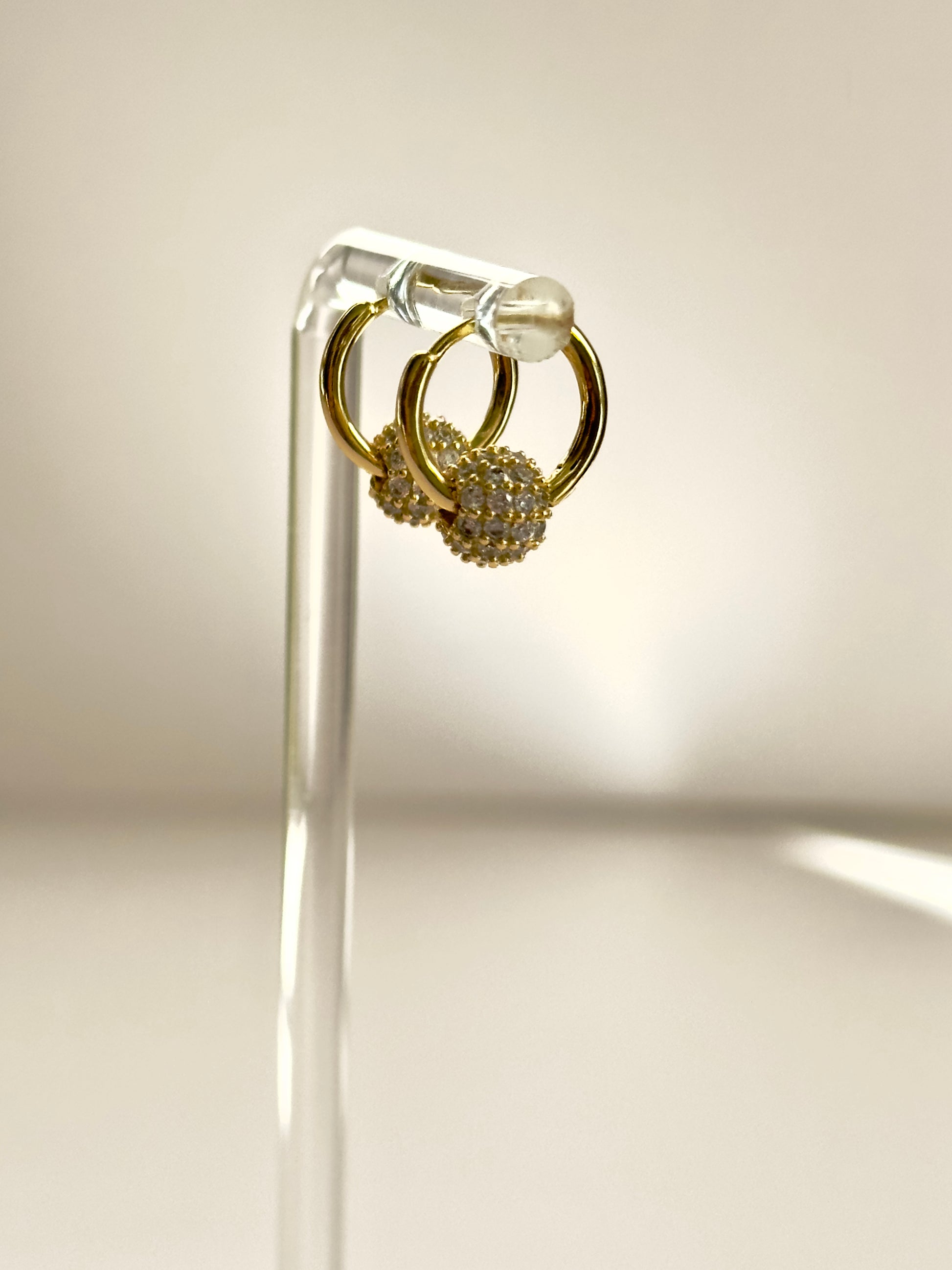 ONLY 1 PAIR LEFT! Looking for a bit of sparkle in your everyday style? Look no further than the Bling huggies - the perfect blend of simplicity and elegance with a touch of (removeable) bling. Crafted with 18k gold plating over stainless steel, these huggies are resistant to water and tarnishing, making them an essential addition to your jewelry collection.