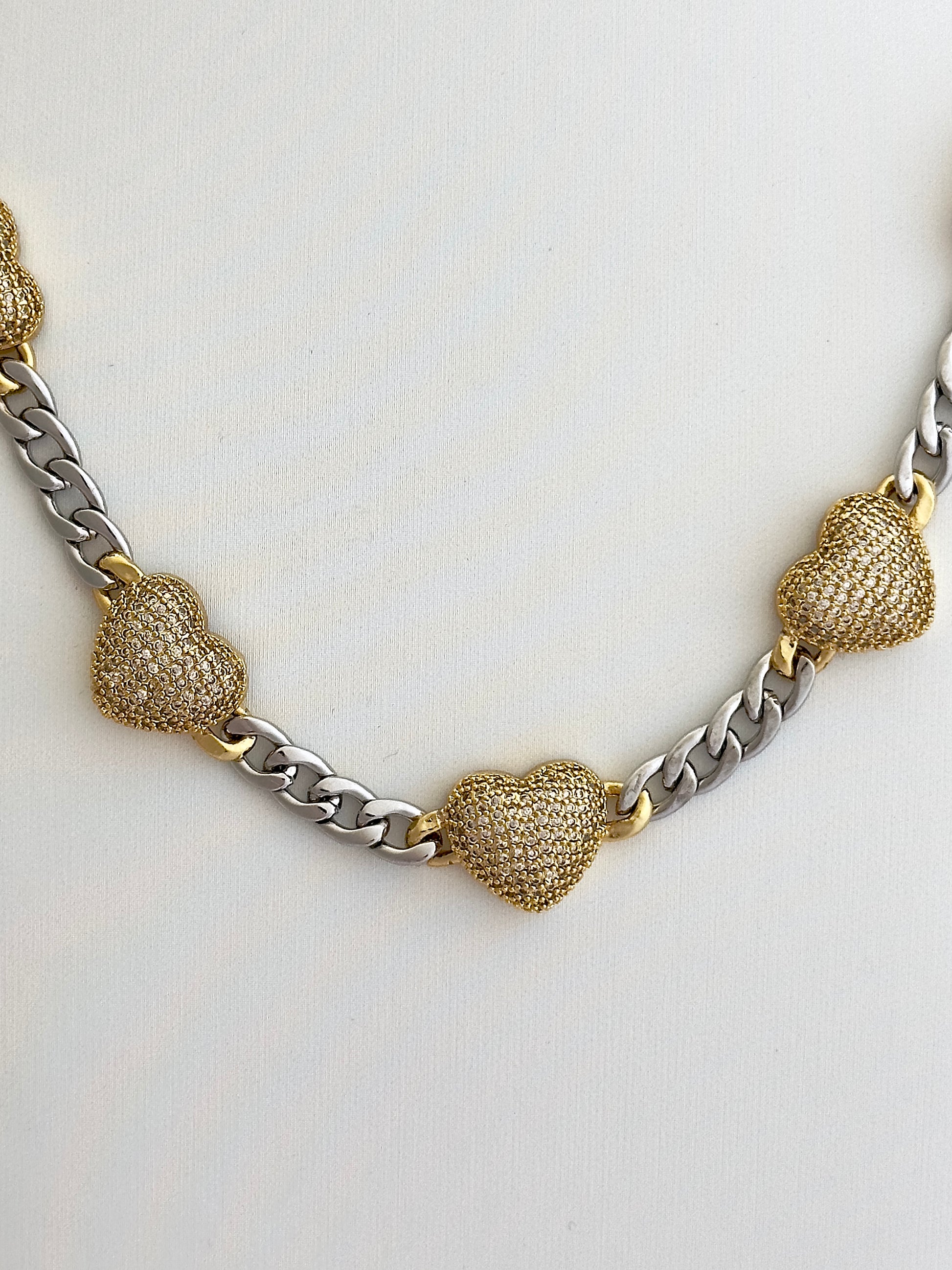 ONLY 1 LEFT! Get ready to add some heart and charm to your jewelry collection with this unique 18k Gold plated necklace! Featuring a playful adjustable length of 18 inches, heart-shaped beads, and sparkling CZ details, this necklace is sure to make a statement.