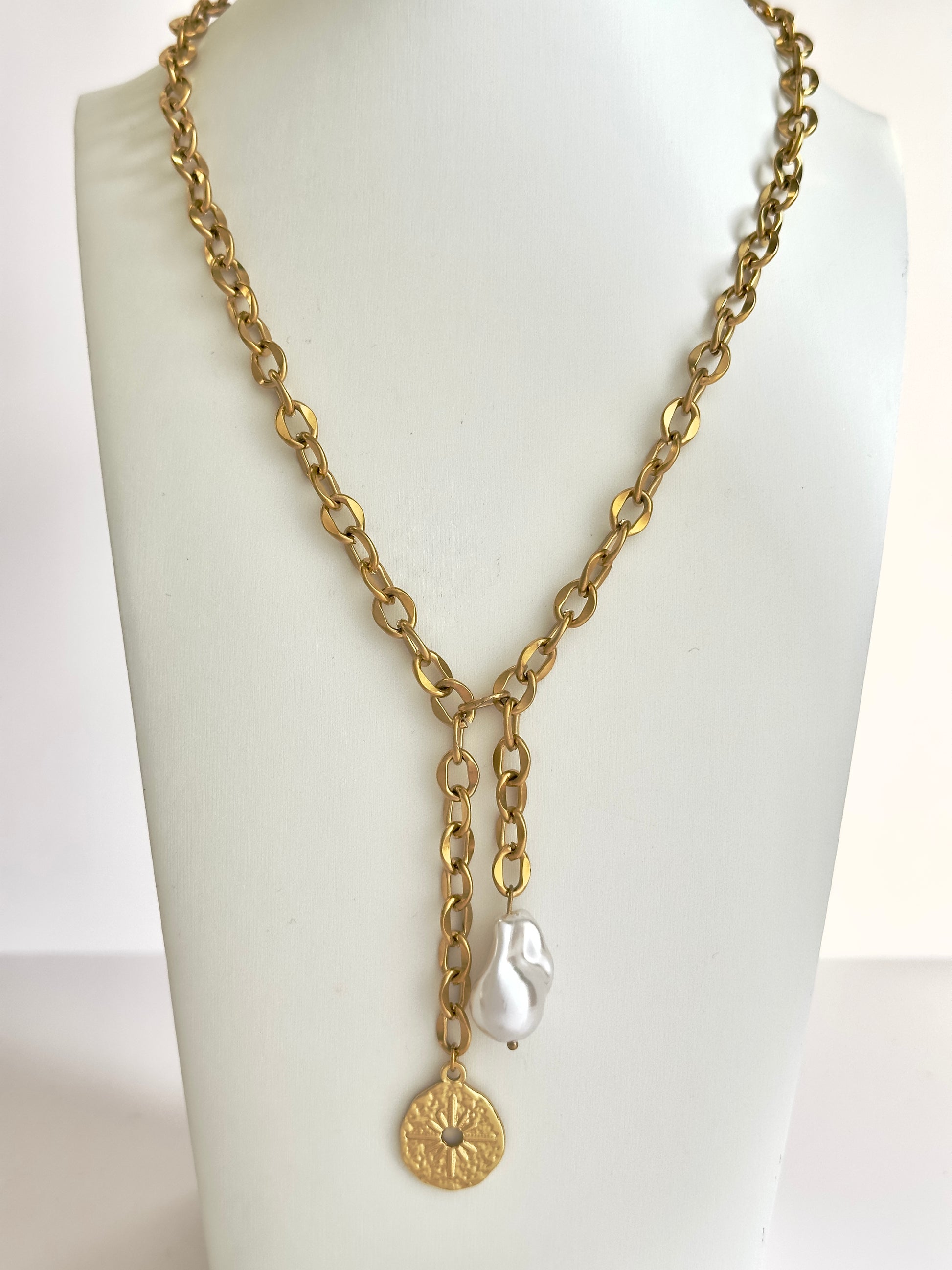 ONLY 1 LEFT! Elevate your everyday elegance with this refined 20" adjustable necklace, featuring lustrous pearls and polished coin accents. Constructed from premium stainless steel with complete waterproof protection, it seamlessly transitions from day to evening without compromise. Customize the drop length to suit your personal aesthetic and enjoy a piece designed for both beauty and longevity.
