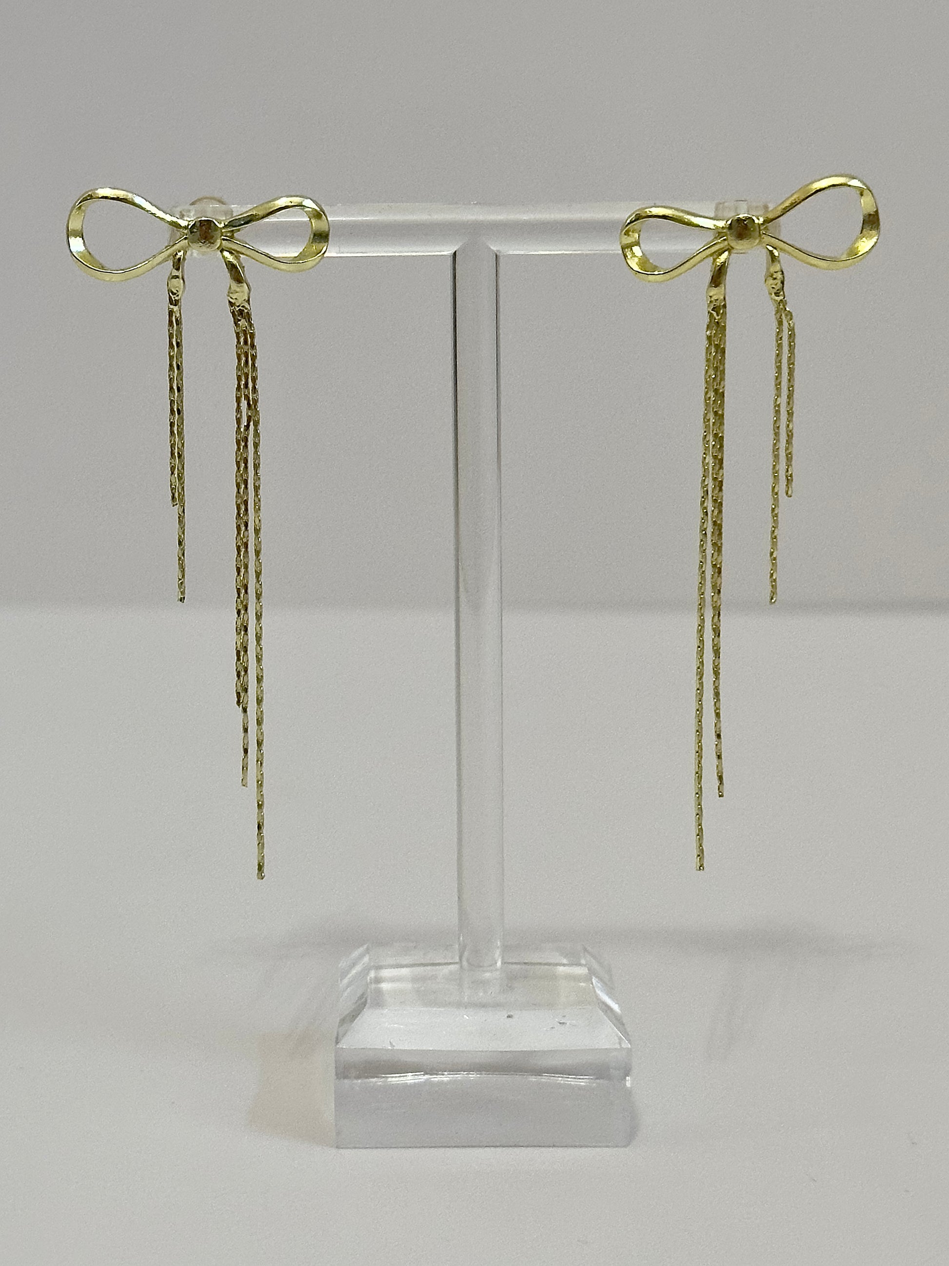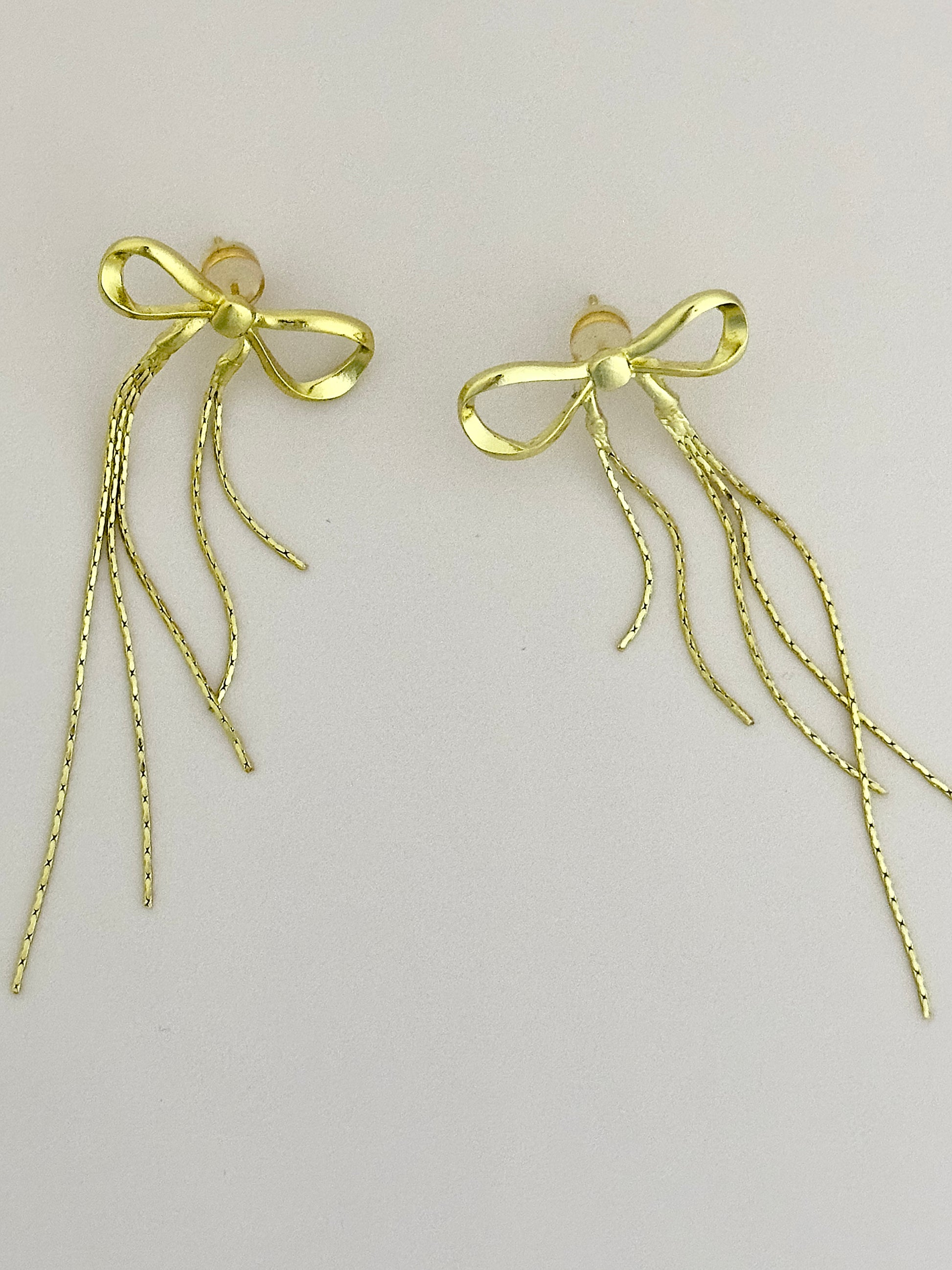 ONLY 1 PAIR LEFT! Upgrade your style with these 18k gold plated earrings featuring 2.5" long dangling bow ties making it ultra lightweight. You'll stand out with this unique and playful addition to your jewelry collection.