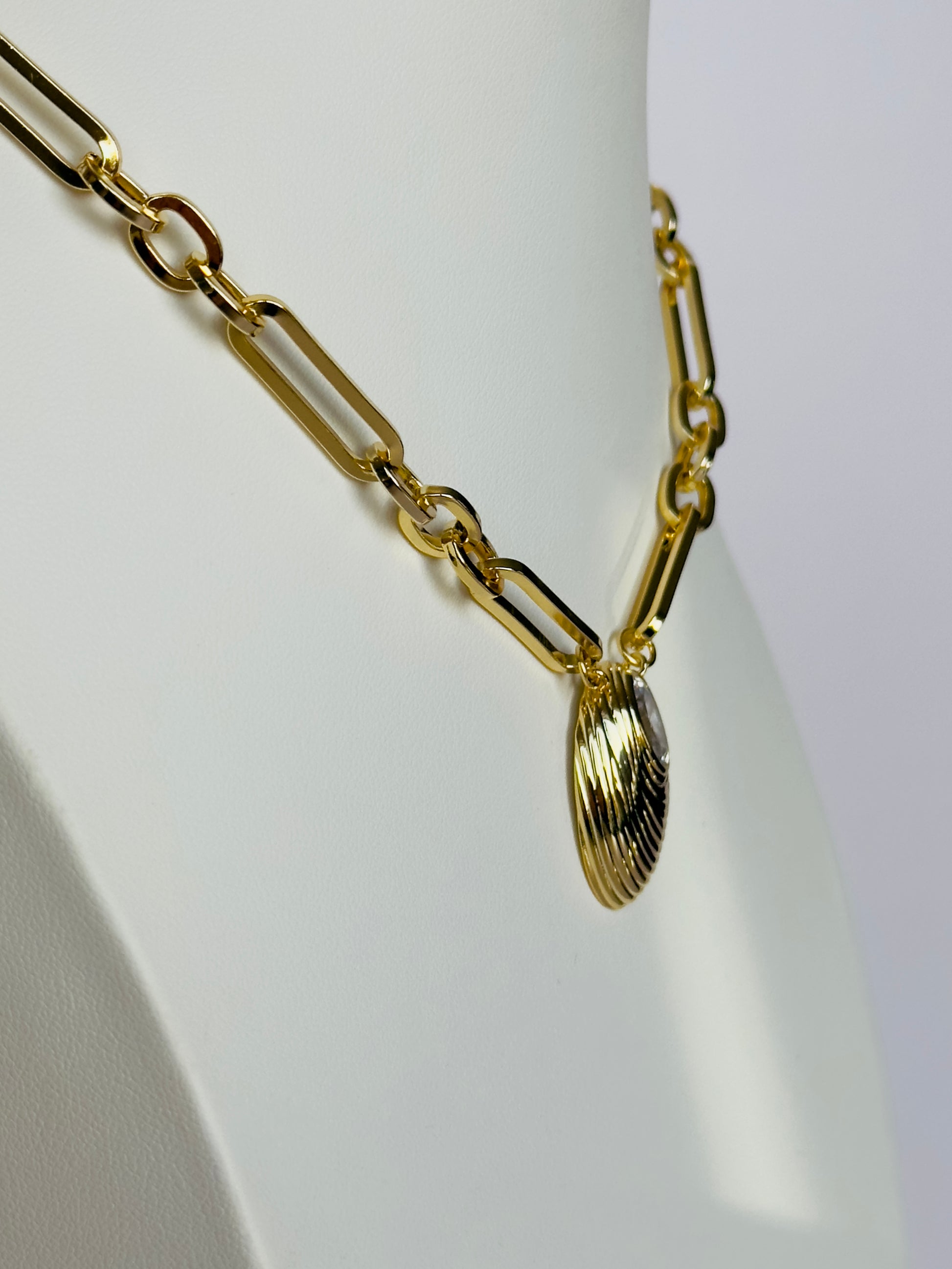 Get ready to shine with this 14K Gold Plated pendant necklace, featuring a stunning diamond shell on an adjustable 16-19" chain. It's the perfect mix of elegance and playfulness, making it a must-have for your jewelry collection!