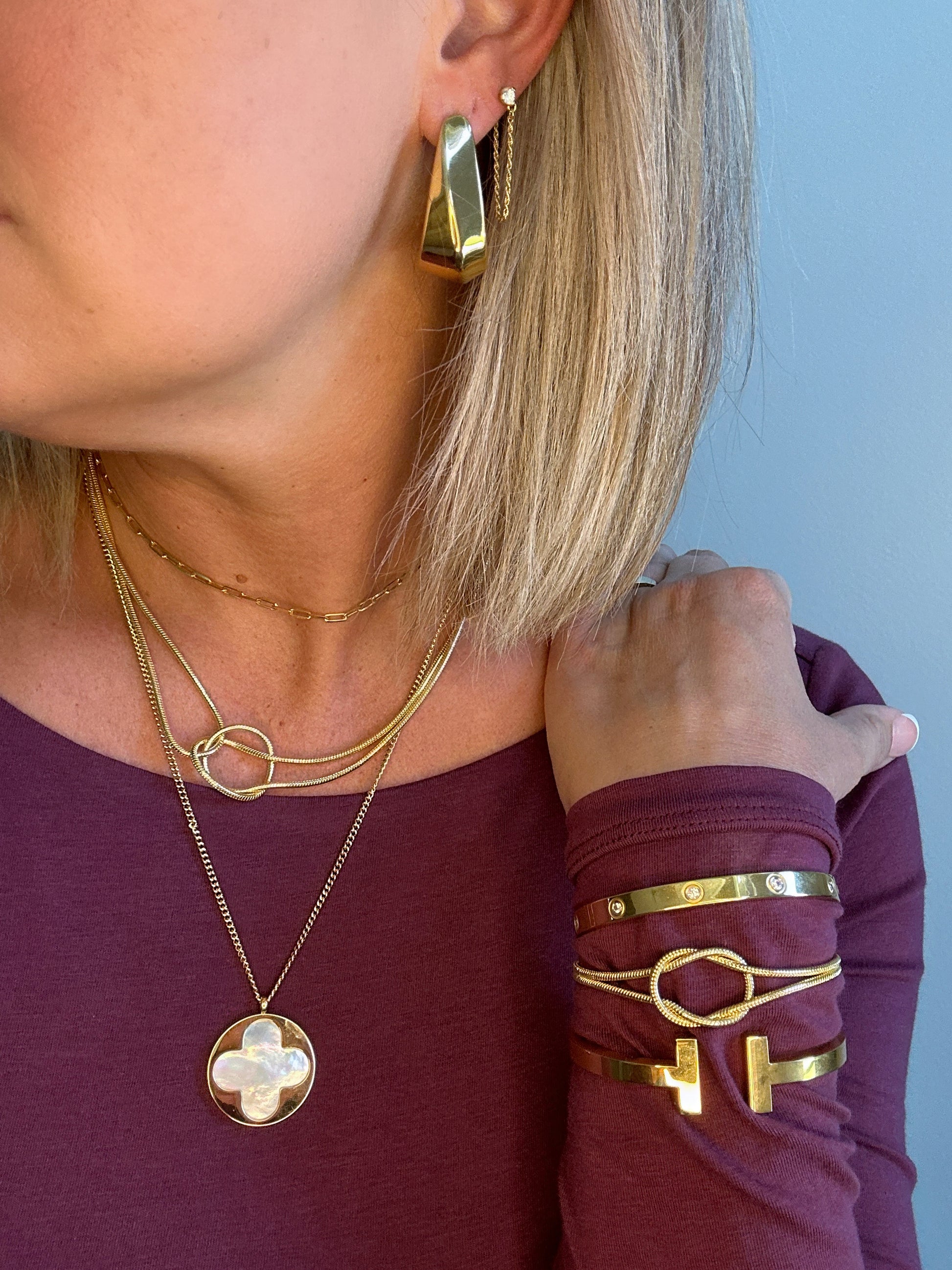 Layer or wear alone with this chic everyday necklace featuring a playful knot and simple gold strands. Adjustable from 16-19" and plated with 14k gold, it's perfect for adding a quirky touch to any outfit! With a playful knot and versatile adjustable length, this 14k gold-plated necklace brings a touch of whimsy to any wardrobe. Layer it or wear it alone for a look that's uniquely chic.
