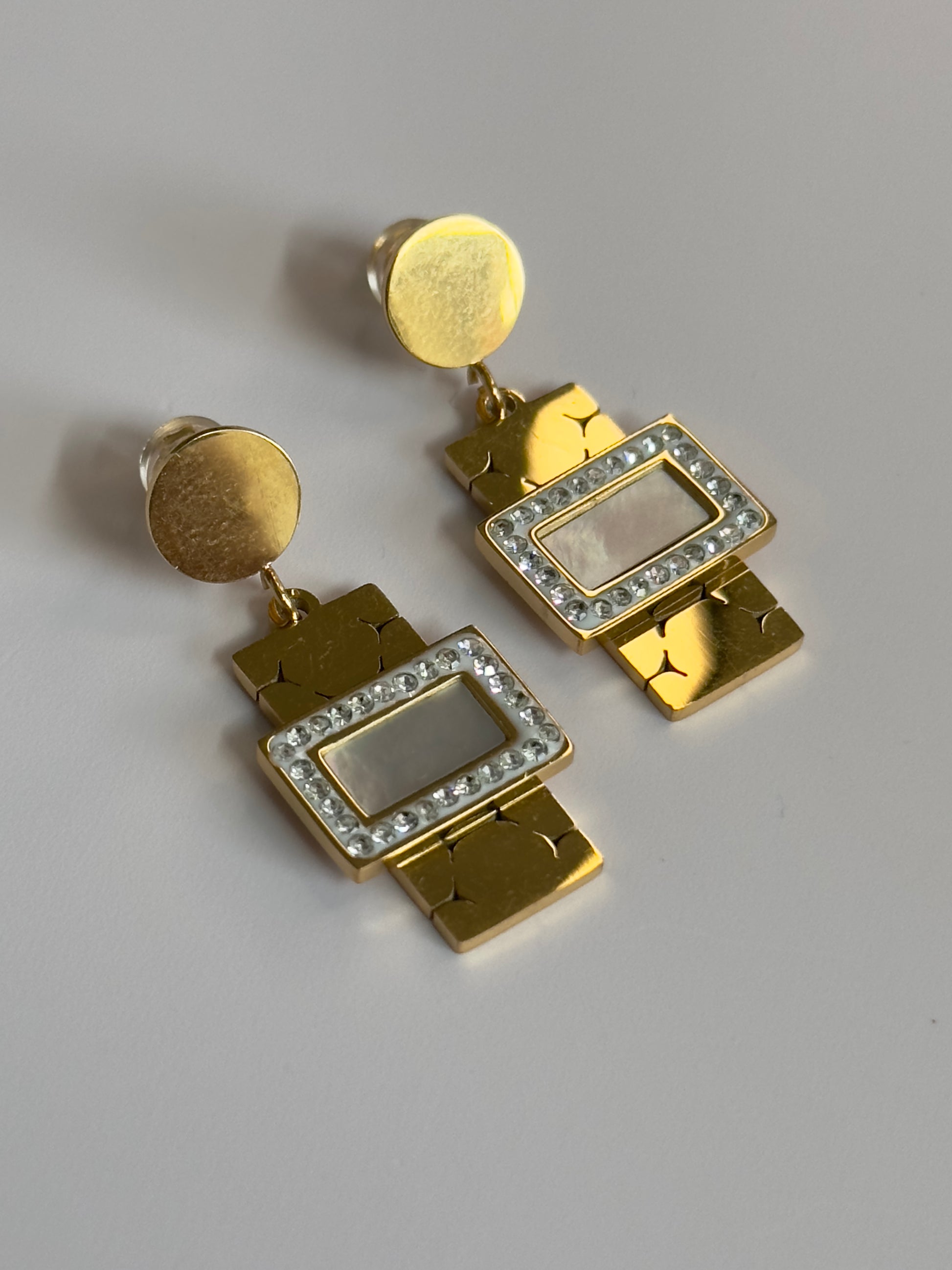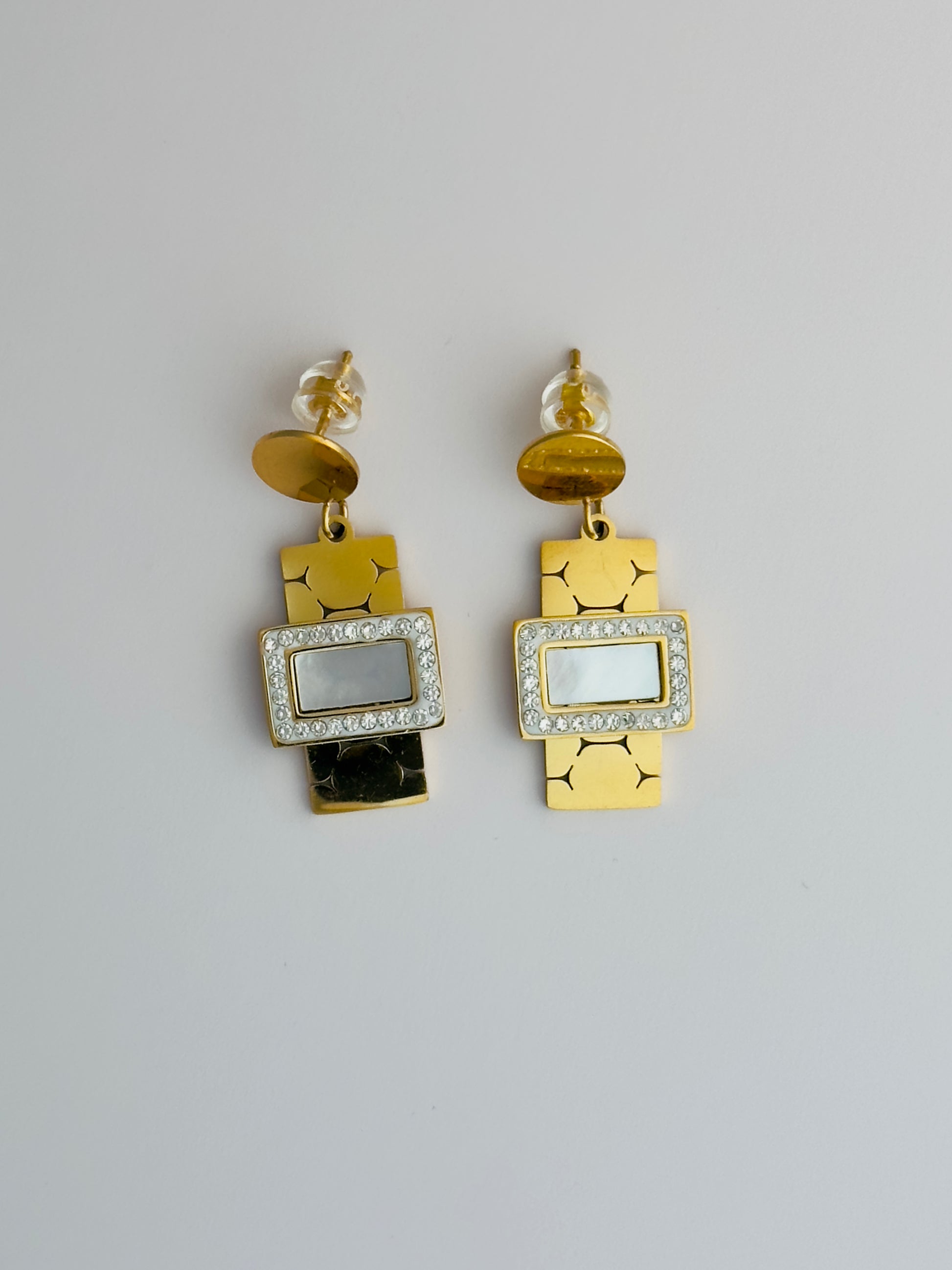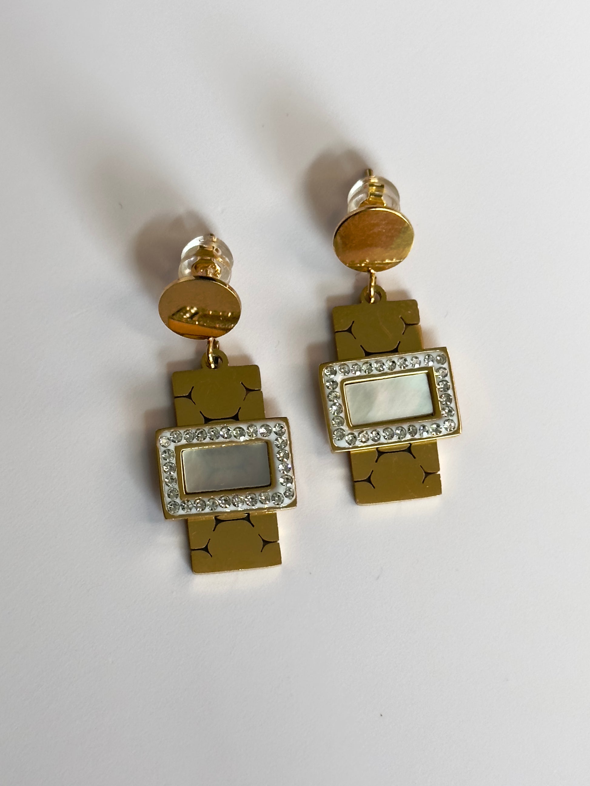 Unique and chic, 1" gold earring with CZ and pearl accents to make it one of a kind! Delight the senses with these elegant Moodboard Earrings. Each handcrafted earring is thoughtfully adorned with a single CZ and pearl, adding a touch of timeless sophistication to any ensemble. Bring a touch of luxury and exclusivity to your jewelry collection with these one-of-a-kind gold earrings.