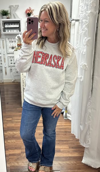 Support your team or just your state with this adorable embroidered sweatshirt. It's a relaxed fit and super cozy!