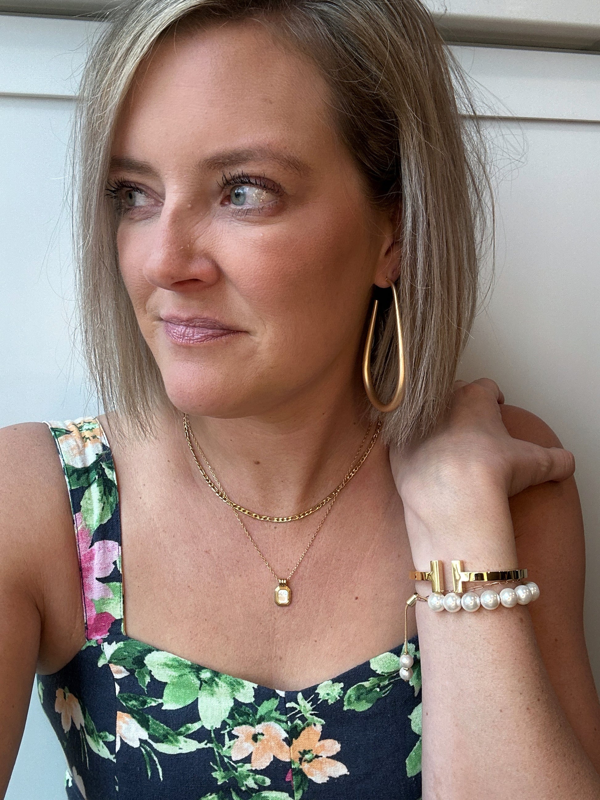 ONLY 1 LEFT! Make a statement with this stunning pearl ball bracelet that's ready to steal the spotlight. Featuring a luxe 18k gold plating and adjustable 7" fit, it's the versatile piece every jewelry lover needs. Wear it solo for understated elegance or stack it with your favorites for maximum impact. Whether you're keeping it simple or going bold, this bracelet brings the perfect touch of sophistication to any occasion.