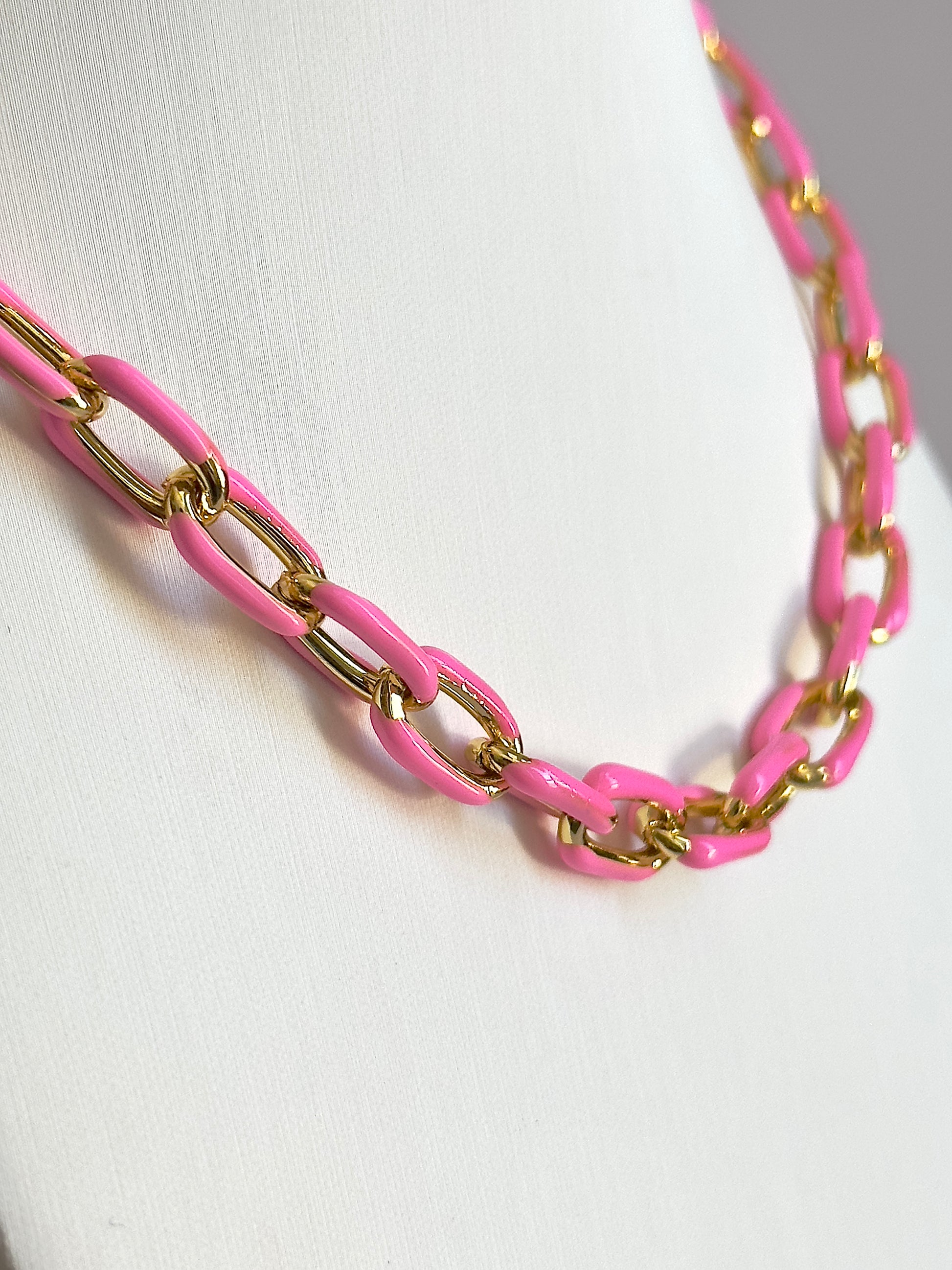 Add instant sophistication to your collection with this captivating piece. The 14K gold plating combined with an elegant acrylic overlay delivers that coveted pink shimmer that transforms any look. At 13" with an adjustable 2" extender, it offers versatile styling options. Complete the set with the coordinating bracelet and earrings for a polished, cohesive aesthetic that truly makes a statement.
