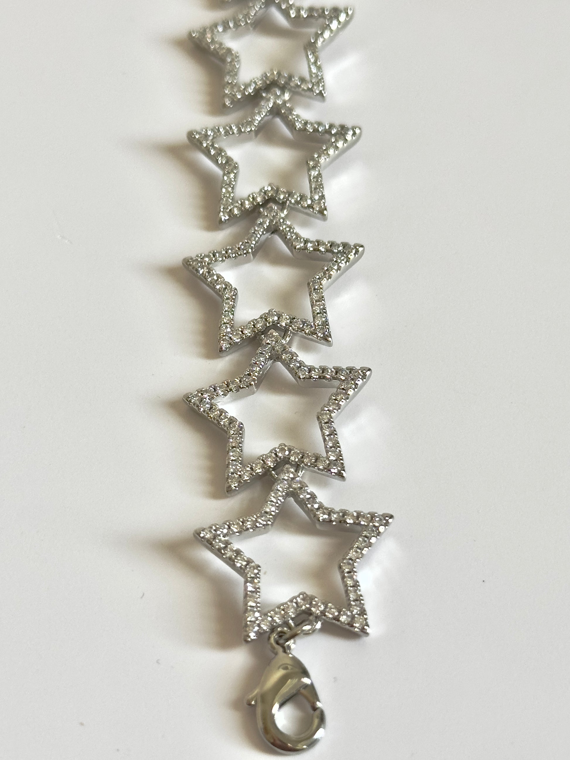 ONLY 1 LEFT! Discover timeless sophistication with the Silver Star Shine Bracelet. Featuring a luxurious 18k gold plating and sparkling cubic zirconia accents, this 7" adjustable chain bracelet seamlessly complements any occasion—from professional settings to evening celebrations. Elevate your accessory collection with a piece that's as versatile as it is beautiful.