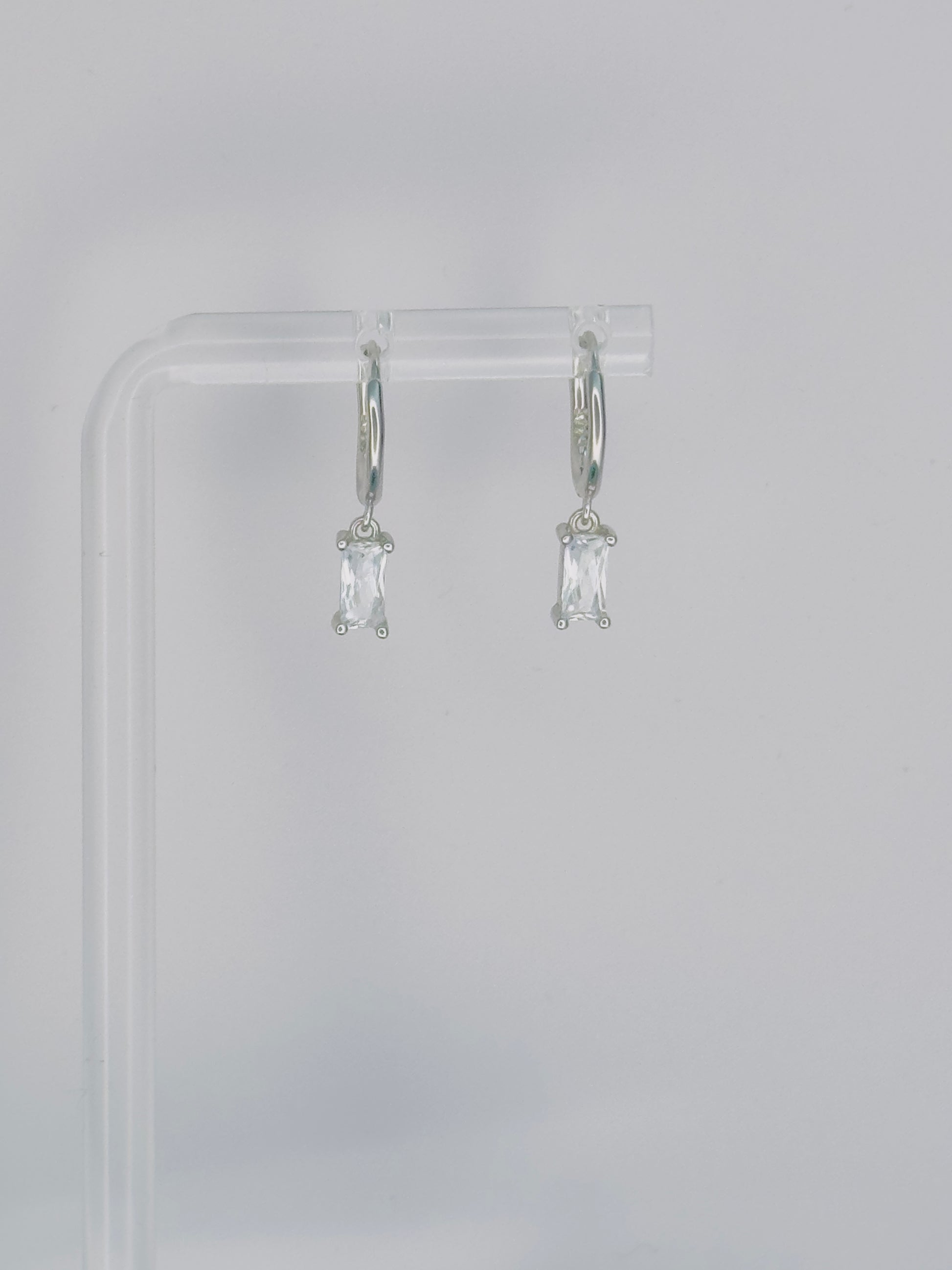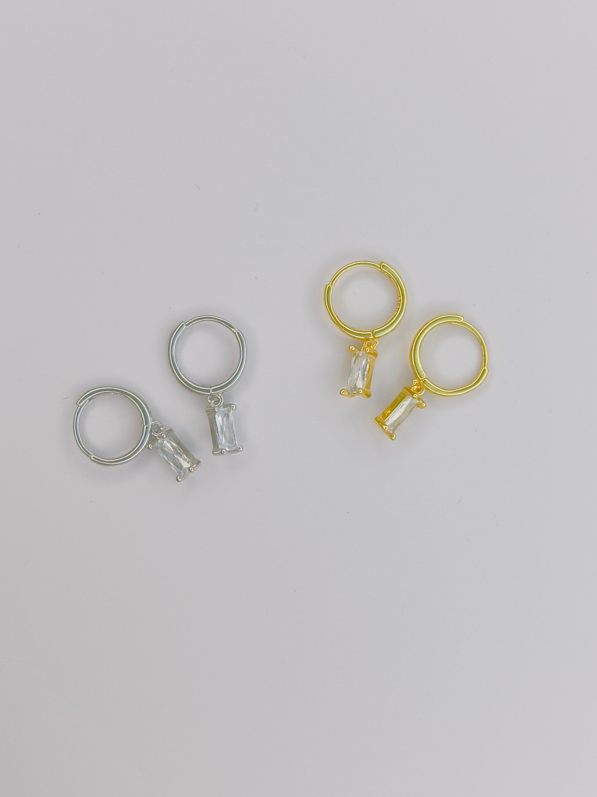 RESTOCKED! Elevate any ensemble with the Sophie Baguette Diamond Dangle Hoops. Crafted from sterling silver, these huggies are hypoallergenic and resistant to wear and tarnishing. The dazzling diamond is expertly crafted from top-quality cubic zirconia, adding a touch of elegance to your look.