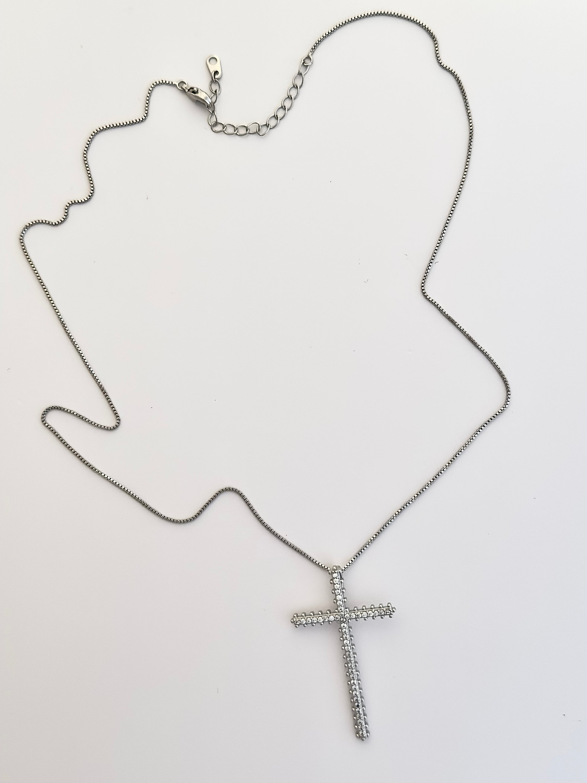 Make a statement with the Statement cross necklace—the piece you've been searching for to complete your collection. This stunning brass casting pendant, brilliantly covered in cubic zirconia, delivers the perfect blend of meaning and glamour. At 2" long and 1.25" wide, the cross commands attention without overwhelming your look. The adjustable 18" box chain with 1.5" extension ensures a custom fit for any neckline, while hypoallergenic materials mean you can wear it confidently every single day.