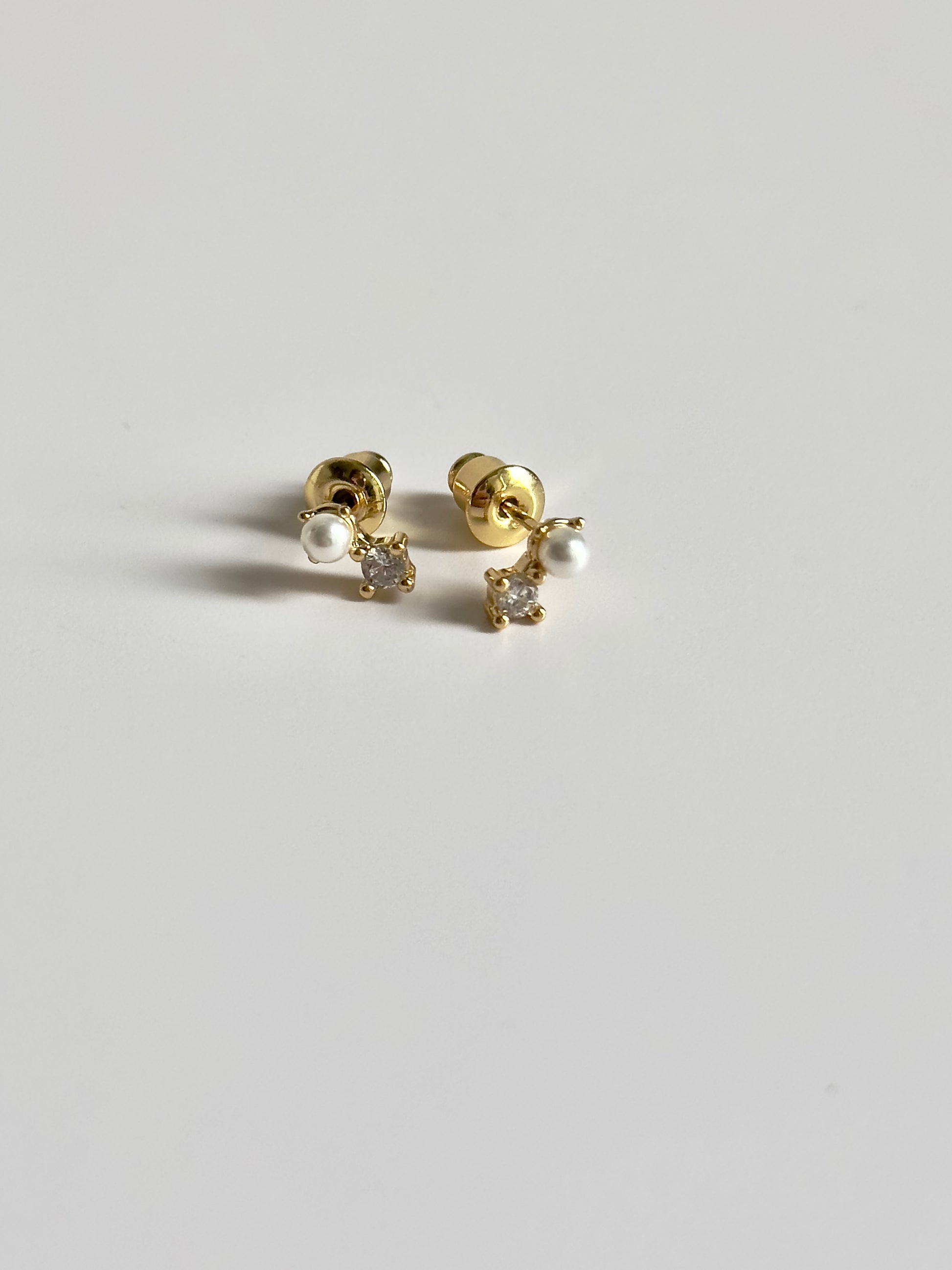 RESTOCKED! Delicate 4mm pearl studs adorned with sparkling cubic zirconia accents, crafted from 18k gold-plated stainless steel for enduring elegance. These timeless pieces combine lustrous pearls with refined detailing, designed to withstand daily wear while maintaining their sophisticated allure.