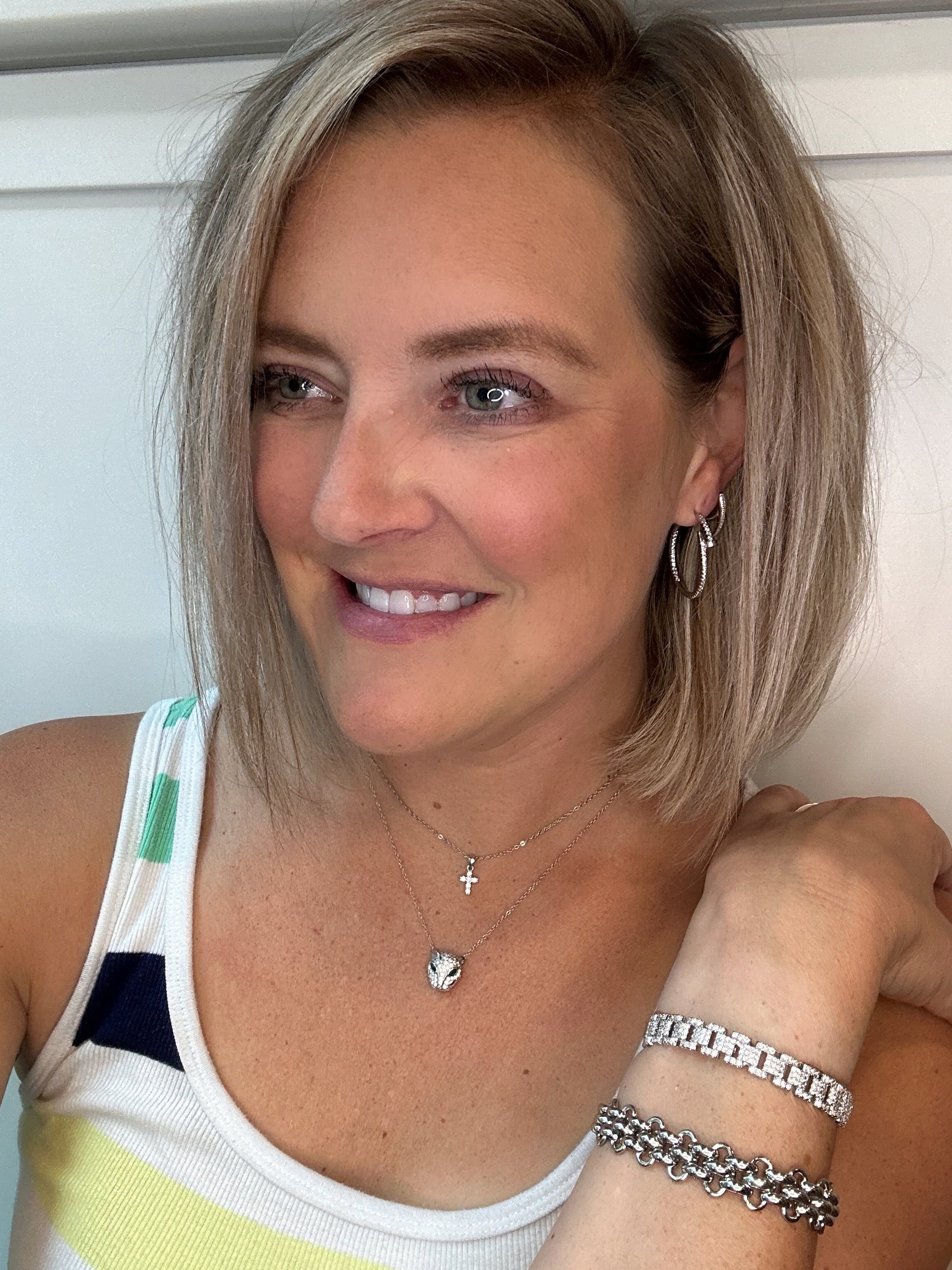 This stunning 22 karat plated Sterling Silver necklace oozes glamour, inspired by the multi-award winning movie, Black Panther. Its sleek and shiny design sparkles with CZ-embellished charms and features an adjustable closure - perfect for any occasion!
